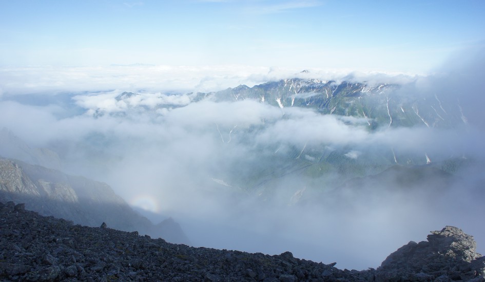 미나미다케(南岳) 3,032.7m 만년설 너머로 보이는게 없어서 많이 아쉽다.