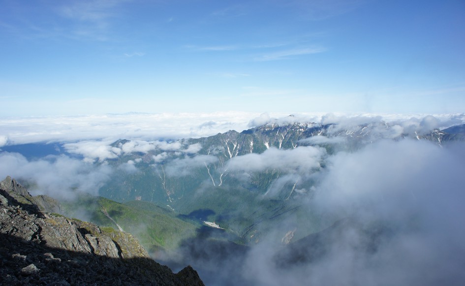 西穂高岳(Nishihodataka Dake) 방향의 모습으로 전문장비 없이는 갈 수 없는 곳이라 한다.