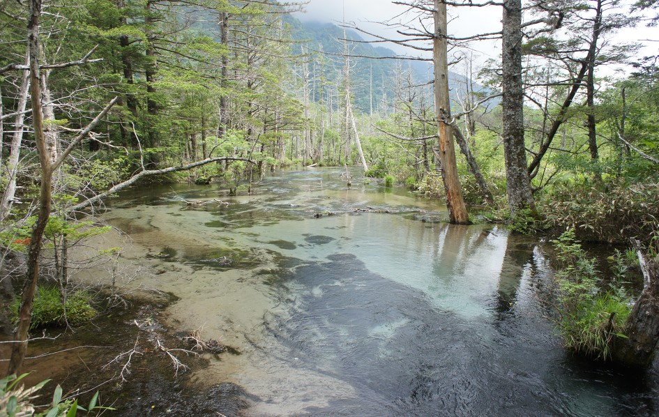 上高池(Kamikochi)"에는 다이소이케(大正池)나 묘진이케(明神池)라는 큰 연못이 있는데, 묘진이케는 입장료를 내야 한다.