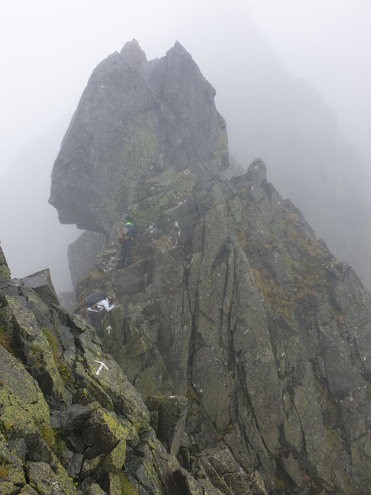 좌우로 천길 낭떠러지가 있고 아슬아슬 바위를 따라 매어져 있는 쇠사슬이 오로지 생명줄인데 바위를 타고 넘을 때는 배낭이 추가되어
