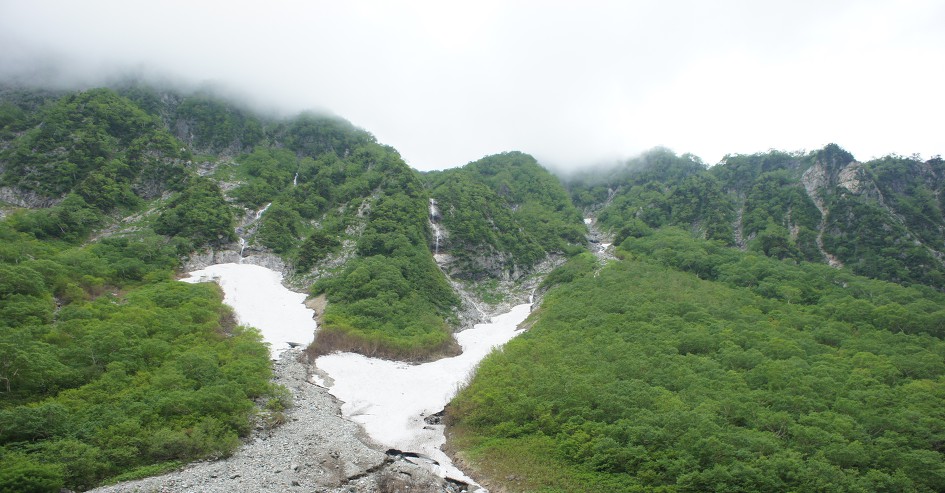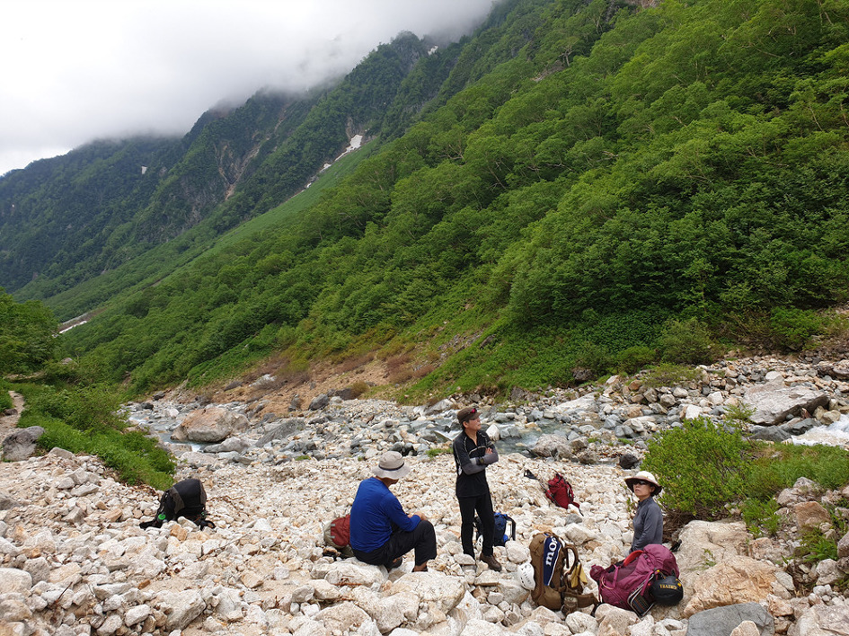 저기 아래로 보이는 계곡 따라 나가면 첫날 우리가 통과하면서 사진을 담았던 요코오다리(橫尾大橋)를 만날 수 있다. 그리고 악천후를 만나면 저곳으로 가야만 한다.
