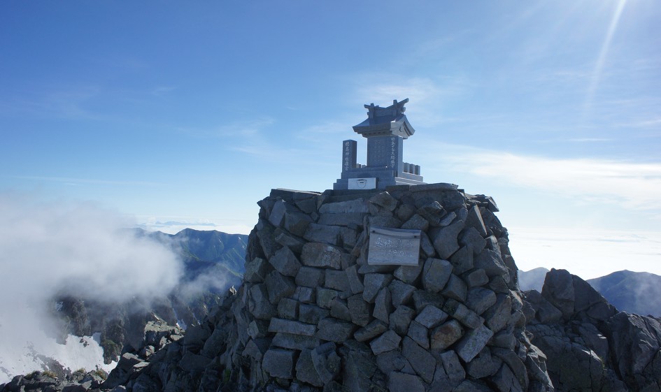 일본 북알프스의 최고봉이며 일본에서 3번째로 높은 봉우리로 정상에 신사가 있는 것이 특징이다.