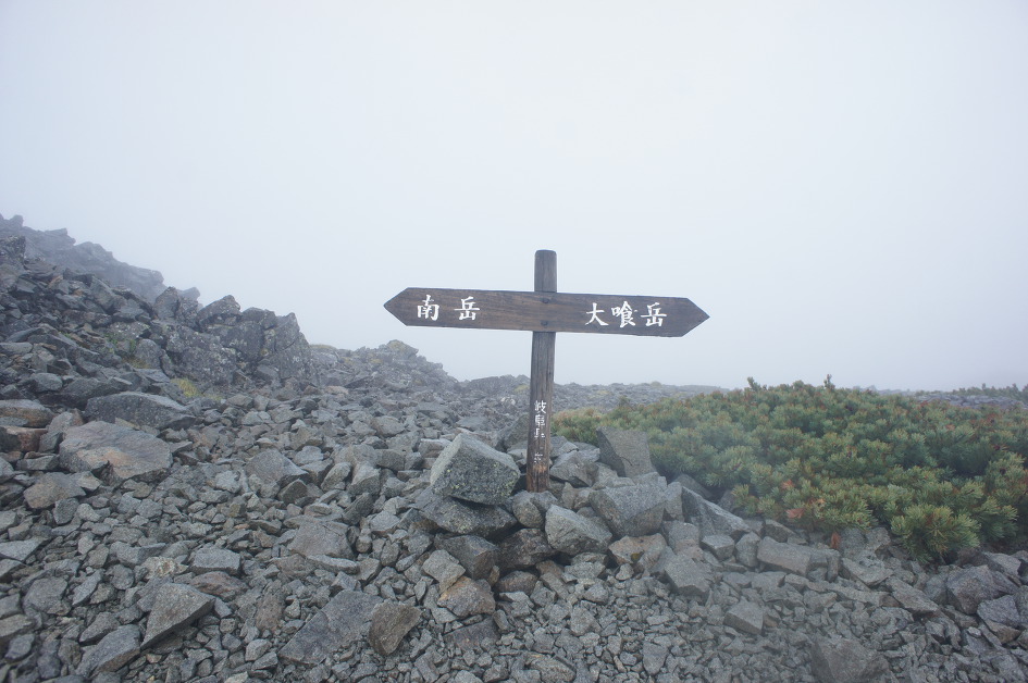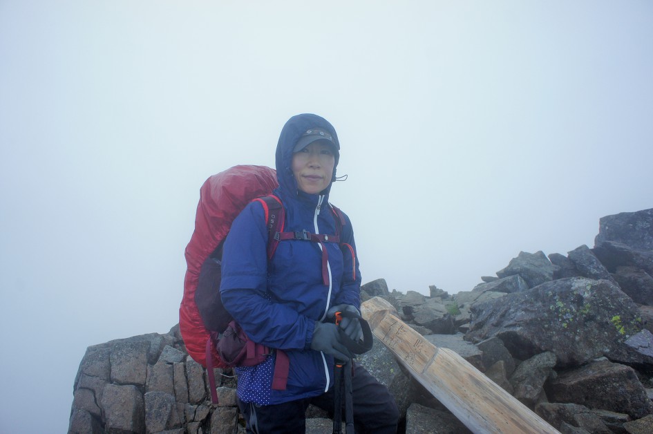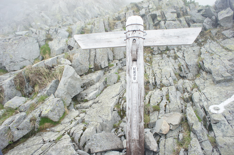 나카다케(中岳) 3,084m, 비와 안갯속이라 아무런 조망이 없다.ㅠㅠ