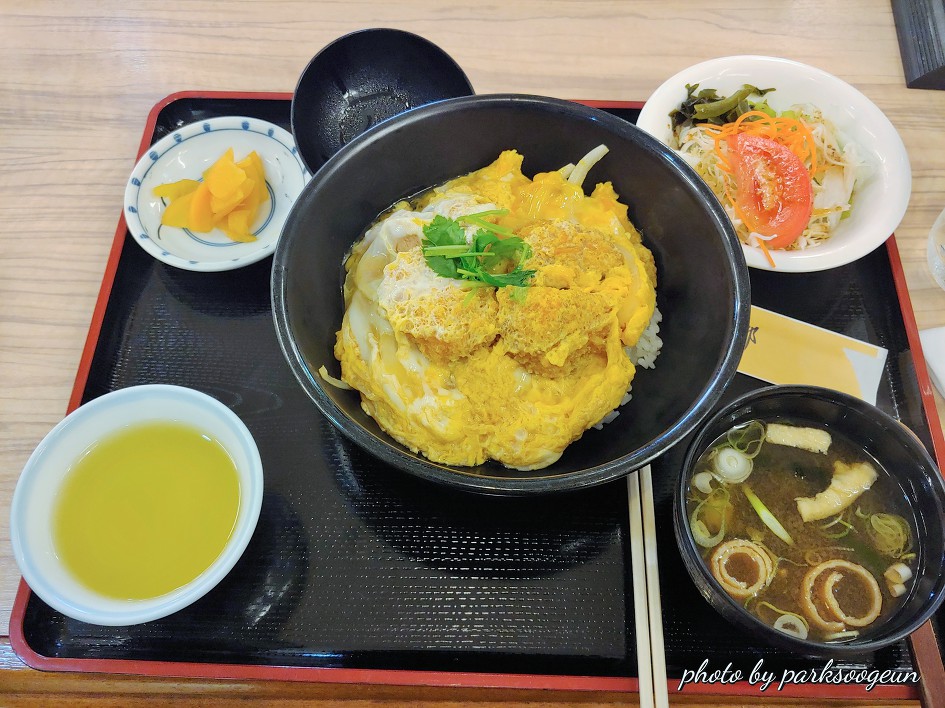 가미코지로 가는 도중 고속도로 휴게소에서 덧밥과 미소된장 국으로 점심식사