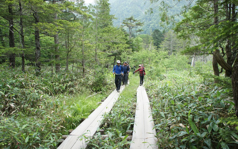 →도쿠사와(德澤 1,562m) 약 80분4km →요코오산장(橫尾 1,620m) 약 60분 3km : 09시 20분→이치노보(一の保1,705m)약 60분2.6km