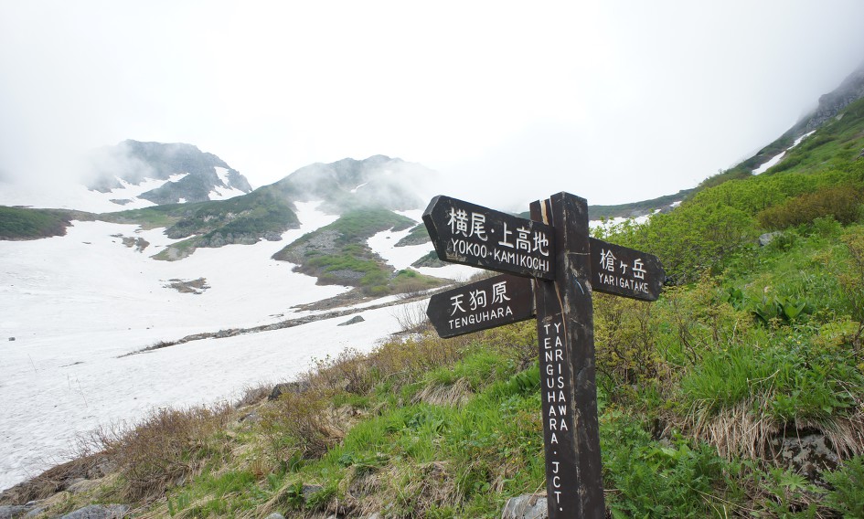 텐구바라분기점(만년설을 왼쪽으로 가로질러 가는 텐구바라(天狗原) 길이 갈라지는 곳임)