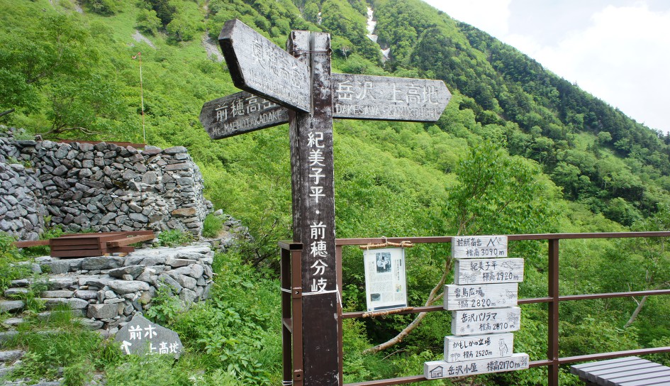 요코오 대교橫尾大橋(이 다리를 건너서 가라사와 분지와 호다카다케 산장이나 기타호다카다케로 갈 수도 있다)