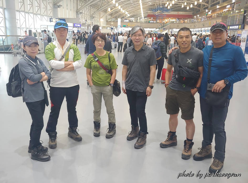 출발 전 김해공항에서 일행들과 한컷 남기고...