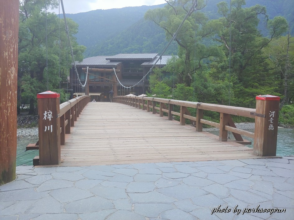 河童橋(Kappabashi Bridge)는 강 사이로 통나무 다리가 놓여진 上高池(Kamikochi)를 상징하는 명소라 할 수 있다.
