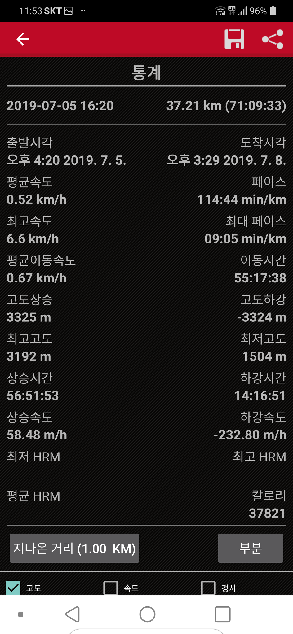 산행일자 : 2019년 7월 5일 ~ 7월 9일(4박 5일)