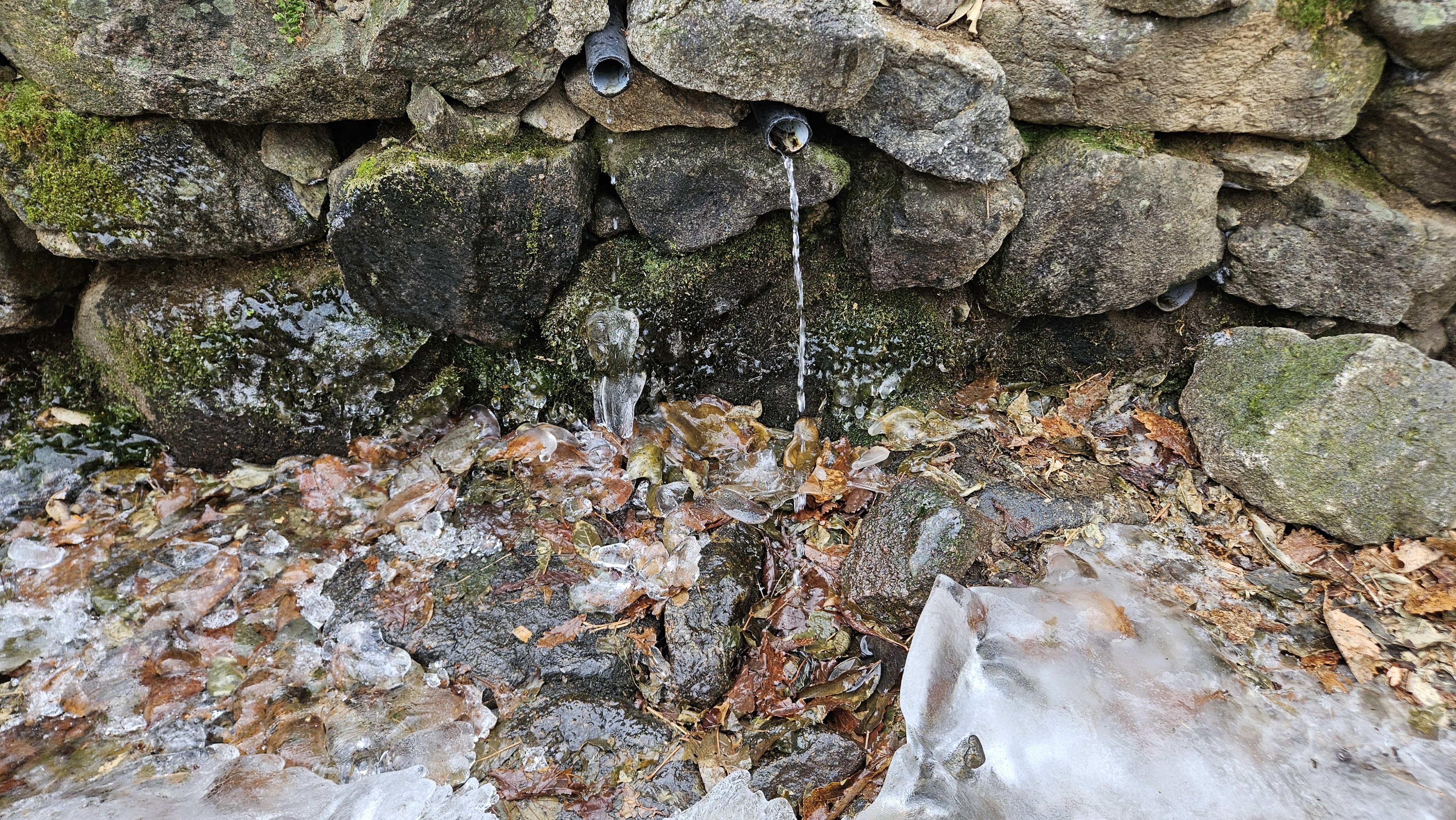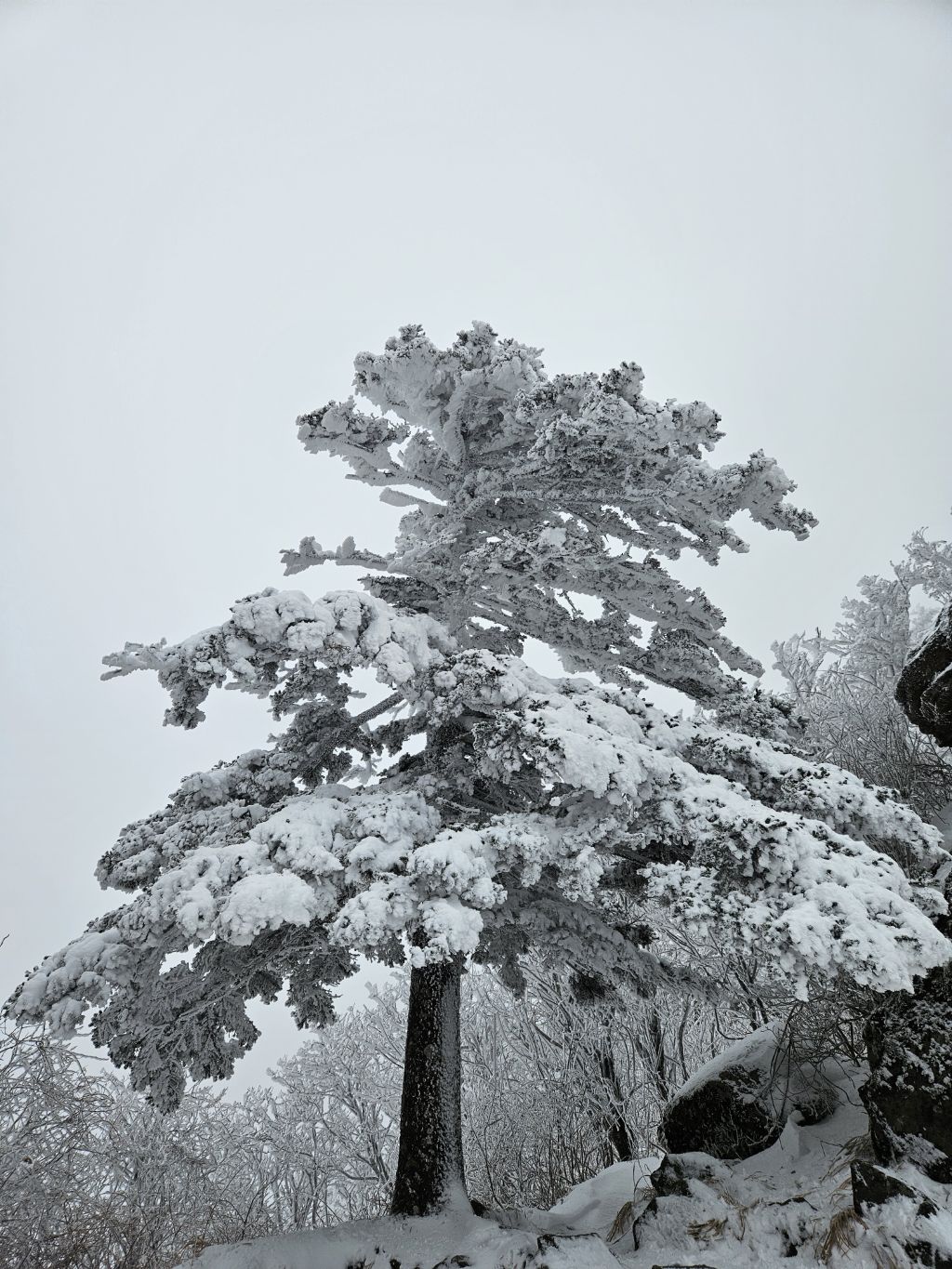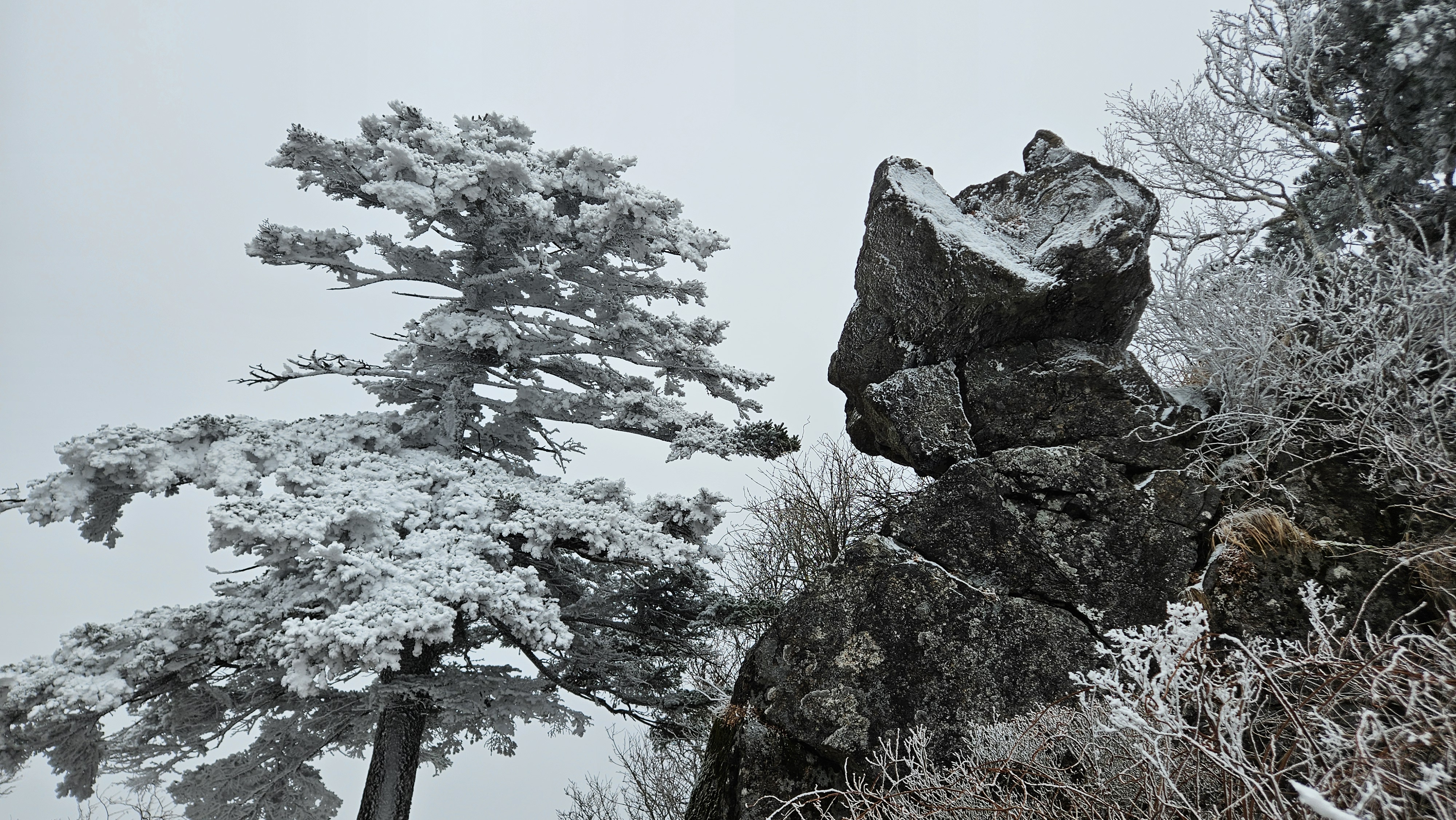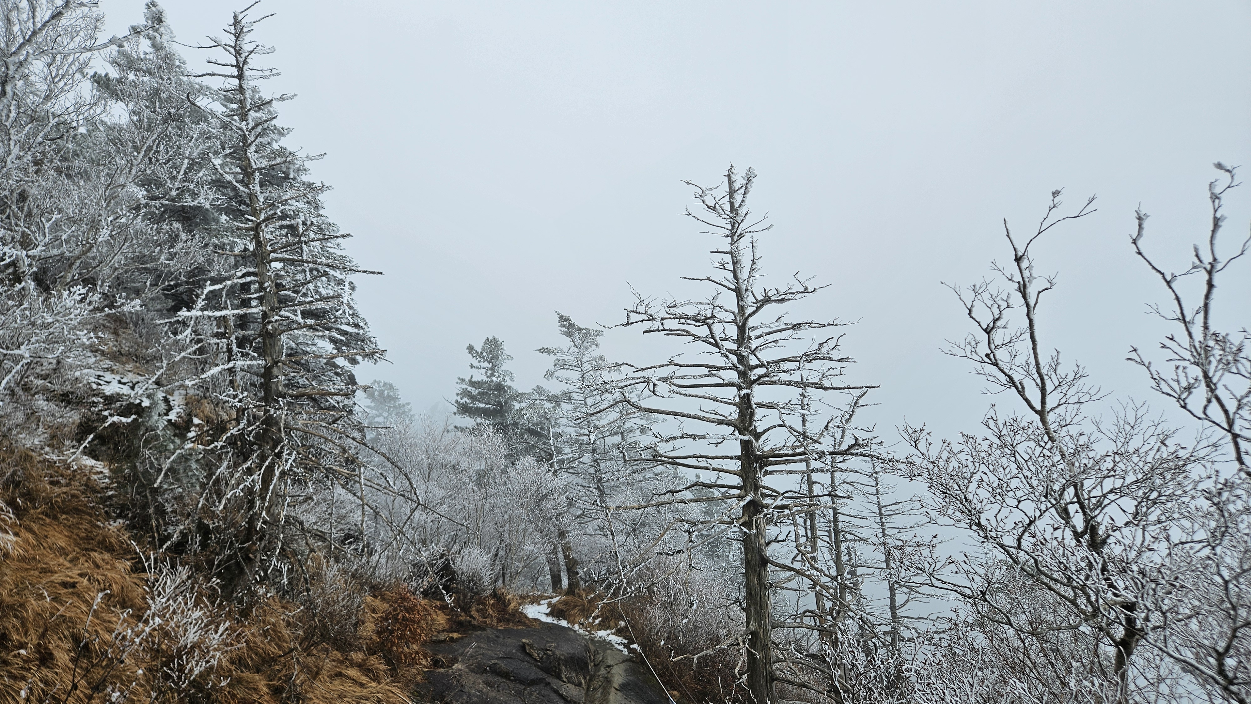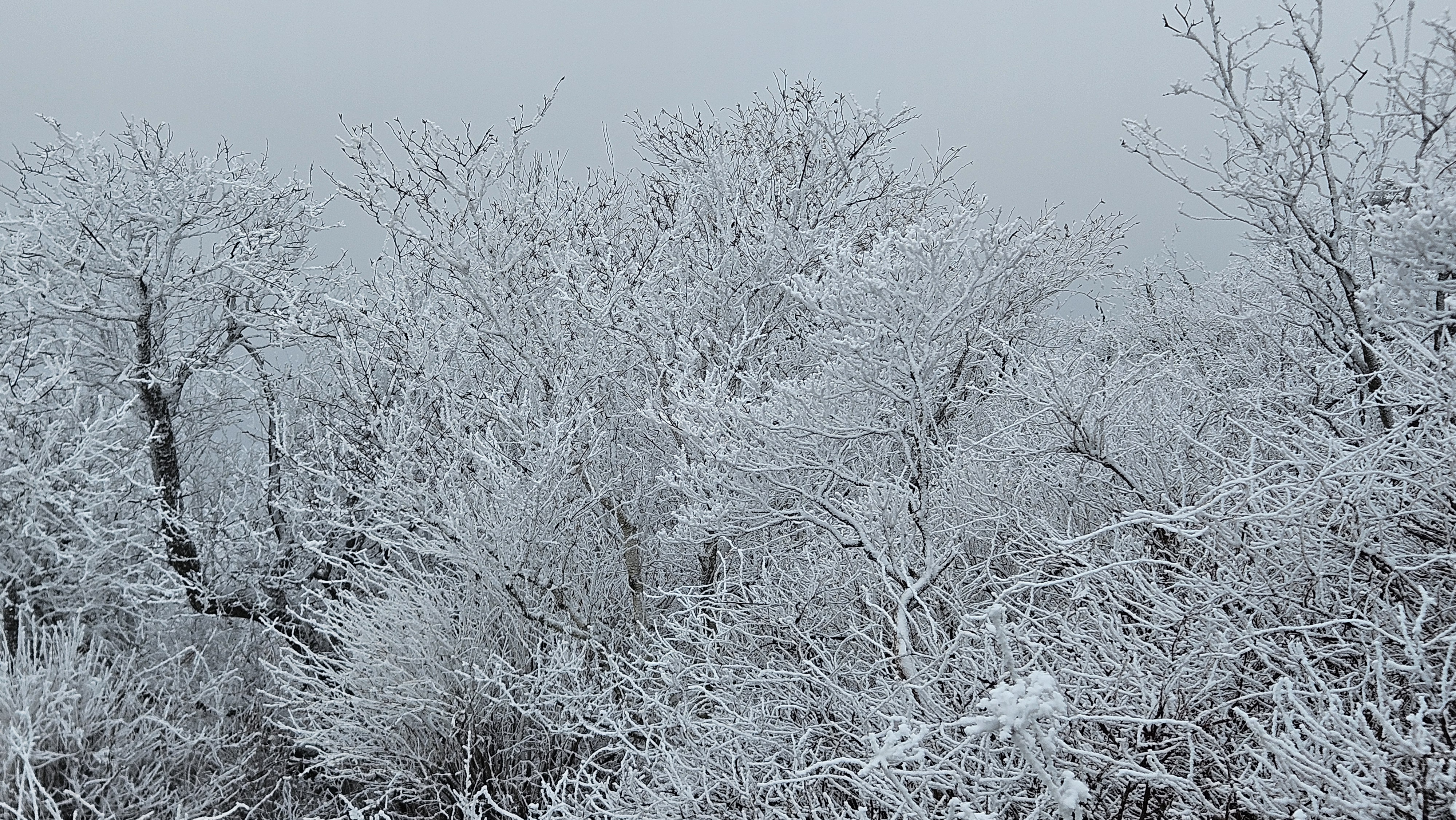 고도를 높이니 길바닥은 얼음으로 많이 미끄럽고 주변은 온통 상고대가 아름답게 반겨줍니다.