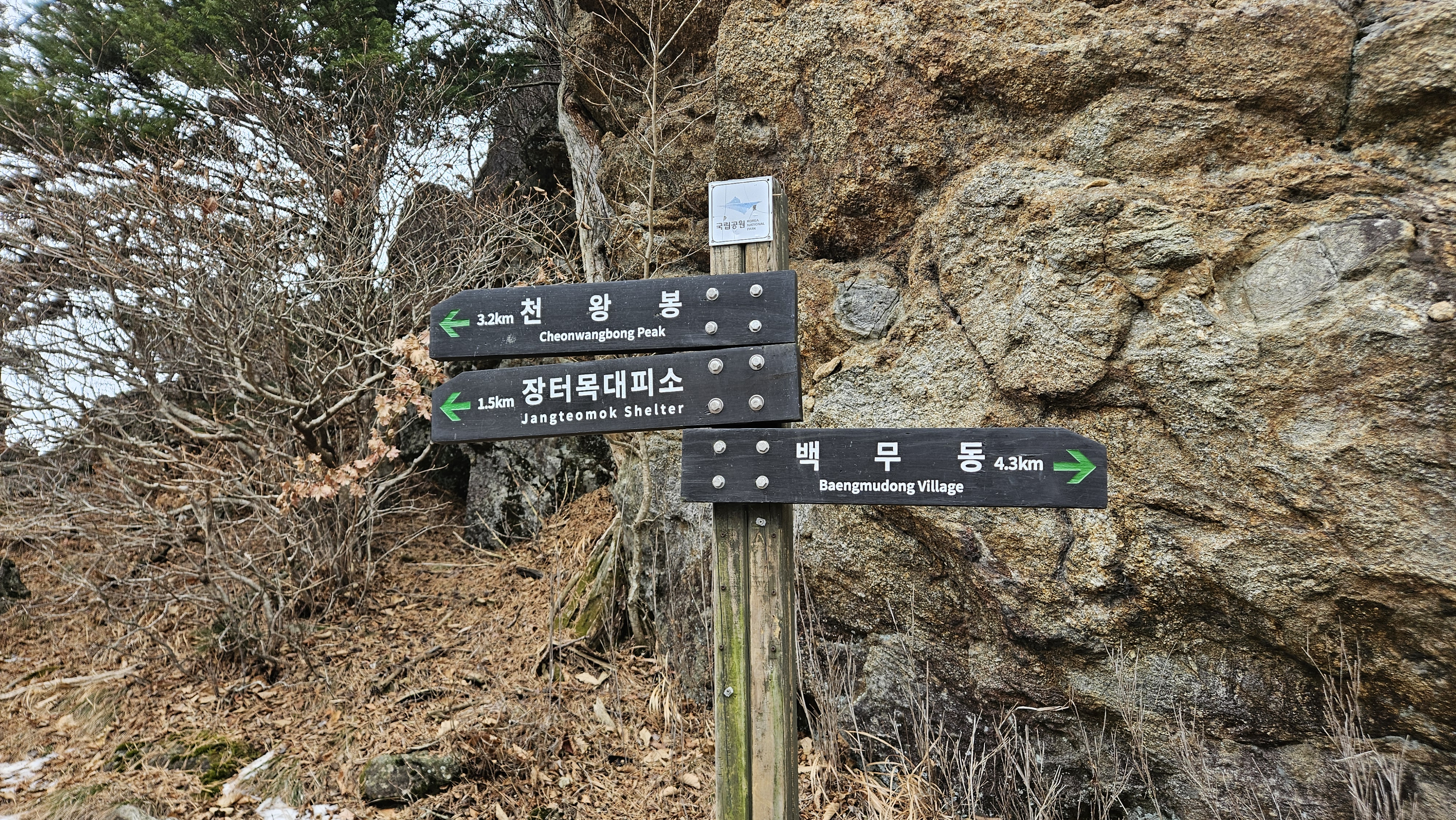 칼바위 삼거리로 여기서 장터목 대피소 방향으로 가면 유암폭포를 만날 수 있습니다.