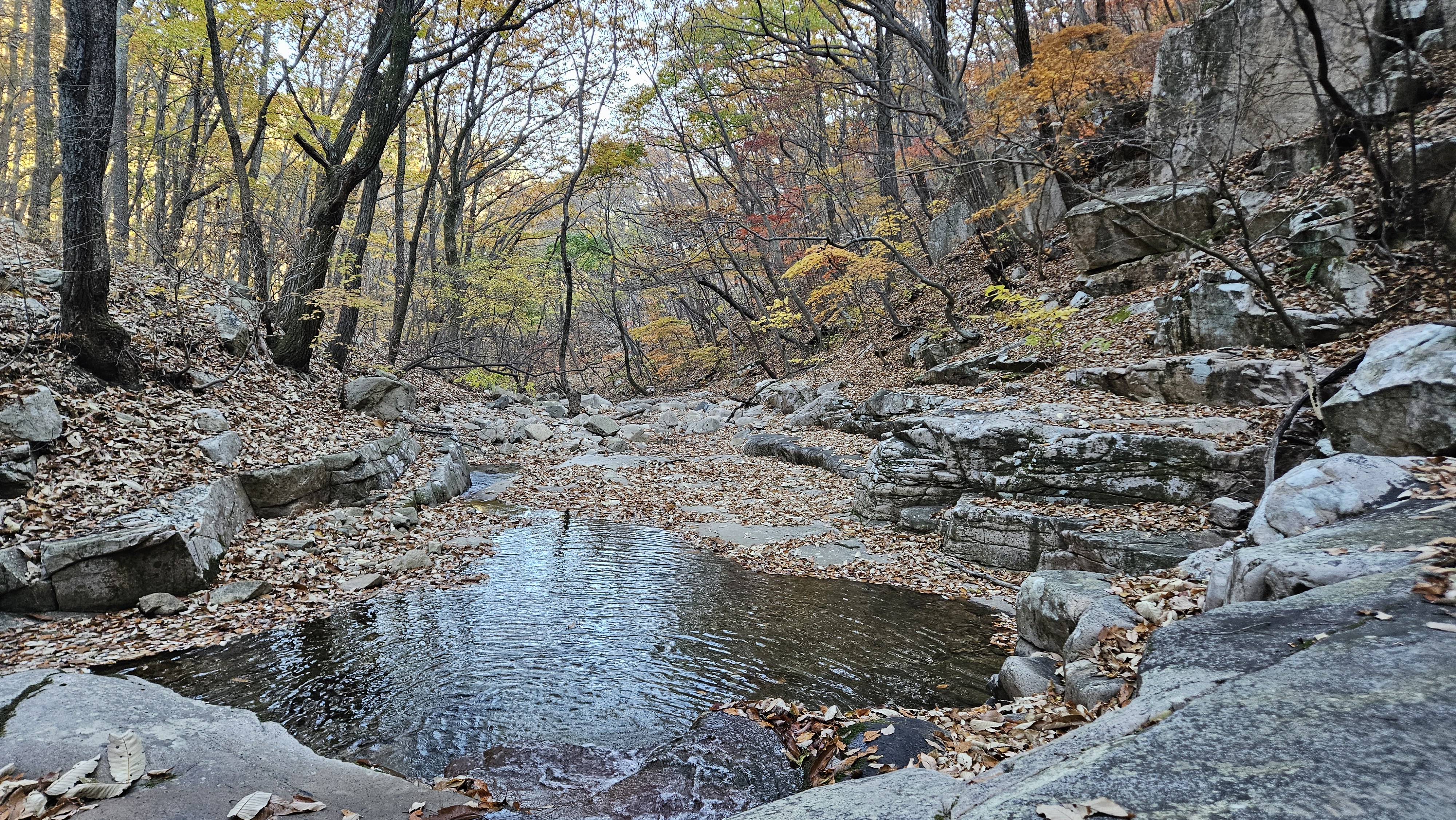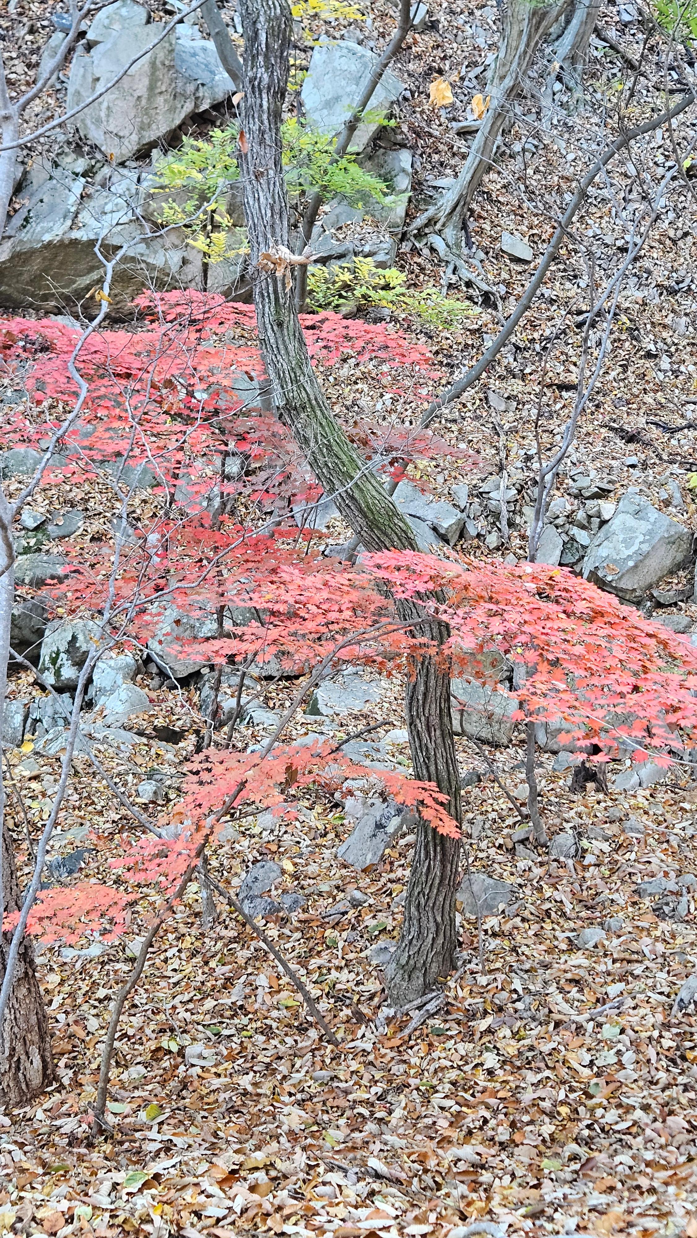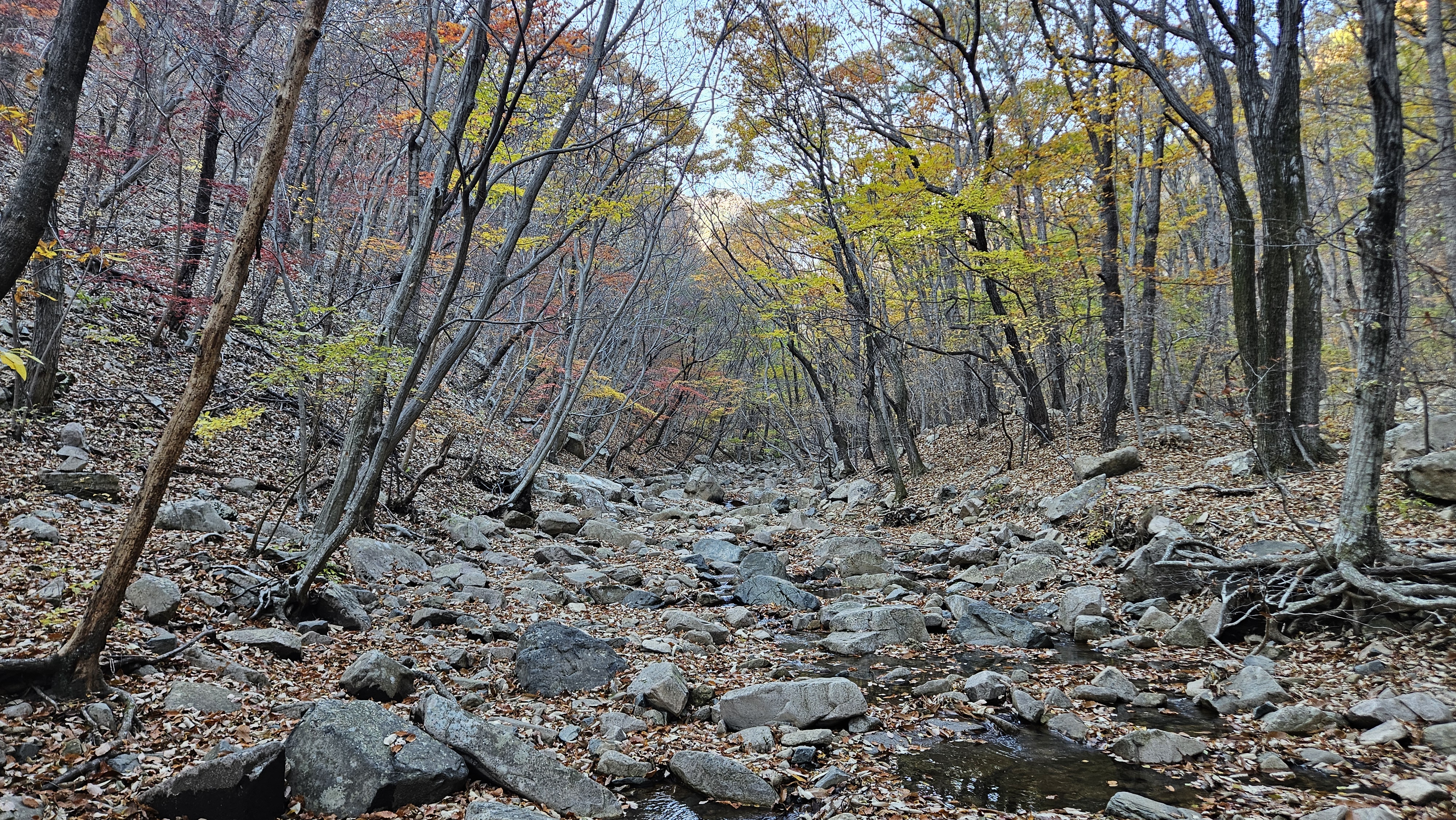 계곡에도 화마의 흔적들은 어김없이 남아 있지만 그래도 자연은 역시 위대합니다. 곳곳에 가을이 남아서 반겨주네요