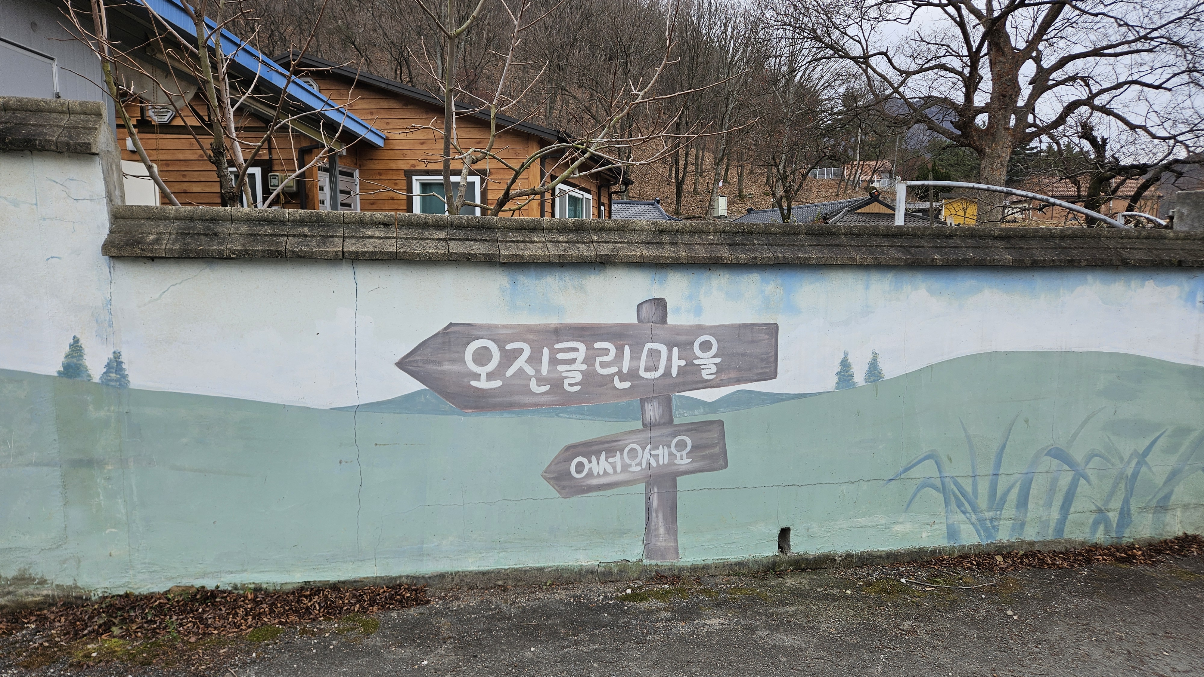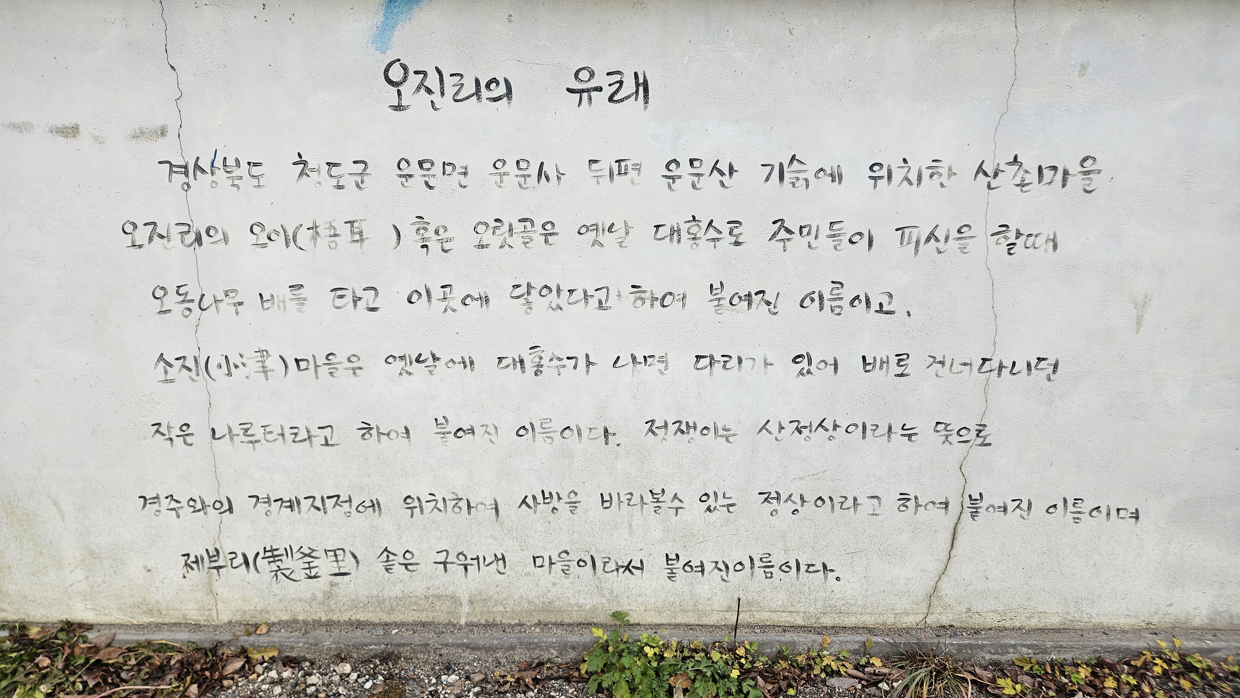 담벼락에 쓰인 오진리의 유래에 대해서도 알아보고...