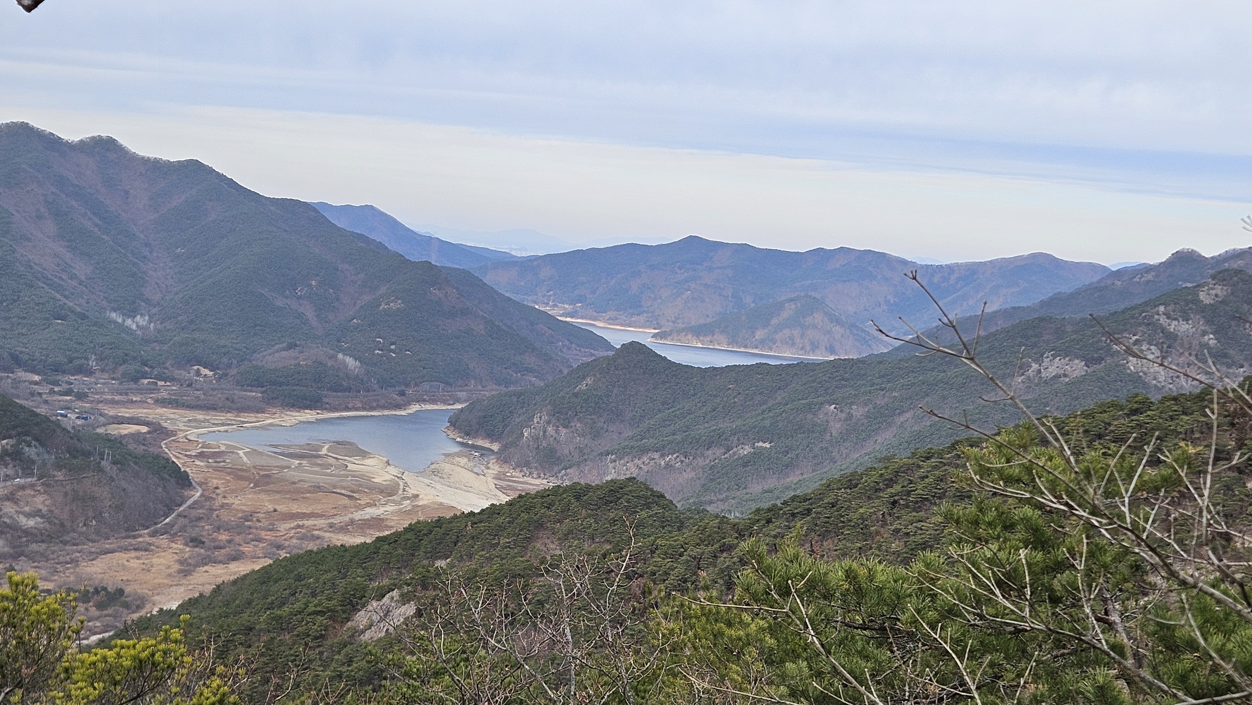 운문호 우측으로 릿지가 제법 까칠한 서지산 자락도 보입니다.