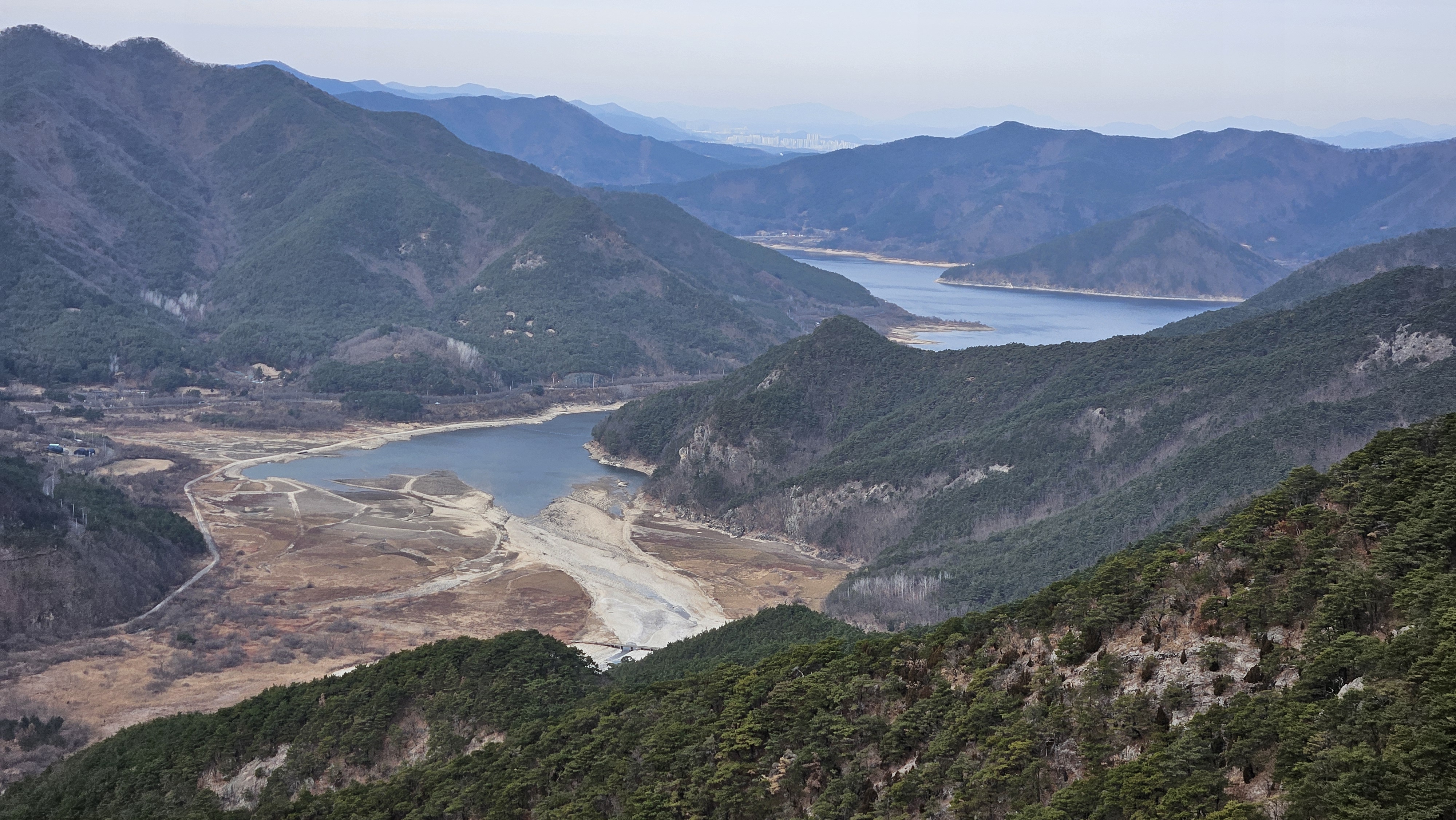 운문호 방향으로 다시 한번 돌아봅니다. 댐 수위가 조금만 높았으면 하는 아쉬움이 남네요