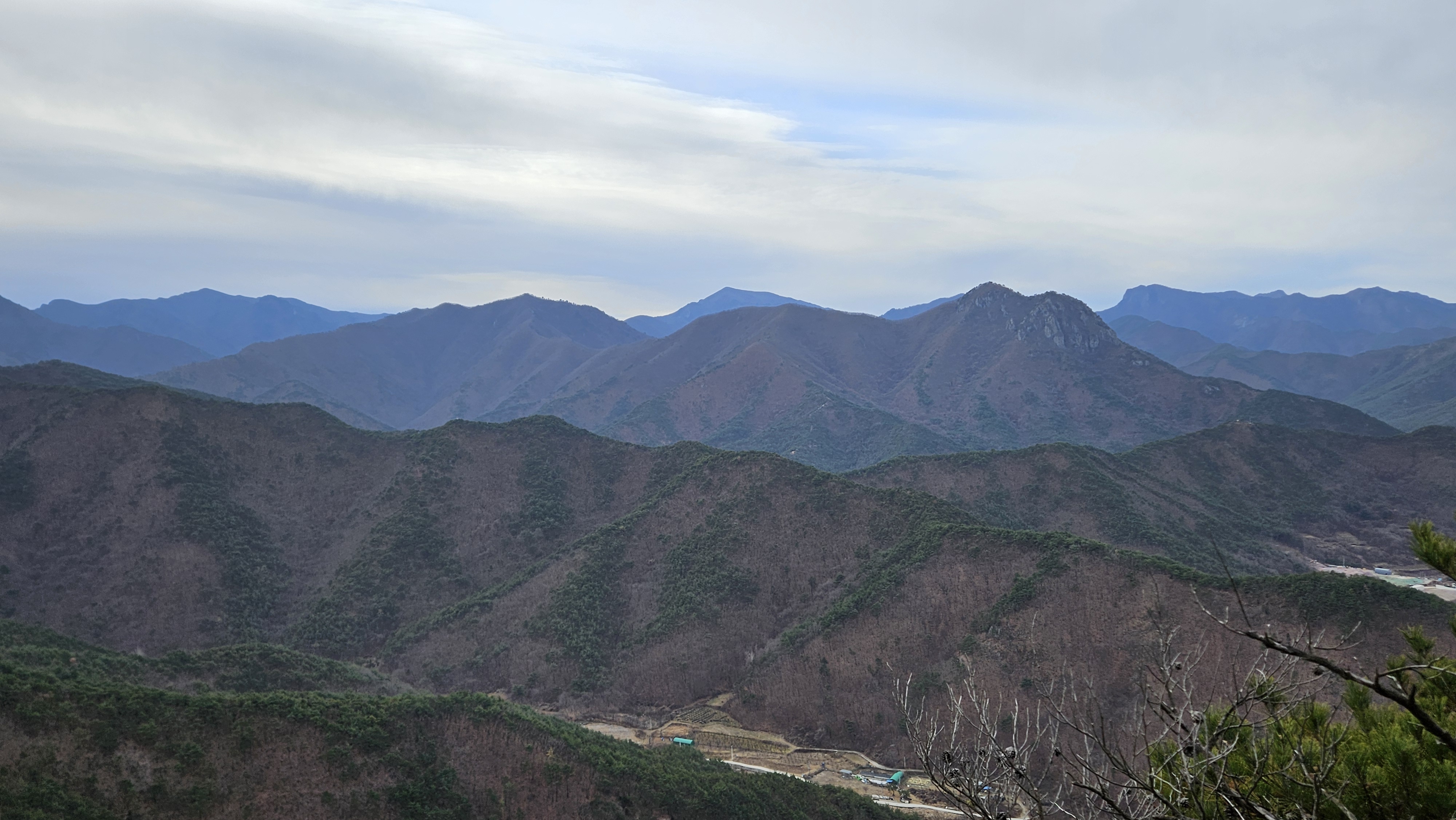 복호산과 지룡산도 보이고 그 뒤로 좌로부터 가지산, 운문산, 억산등이 멋지게 병풍처럼 둘러쳐 있습니다.