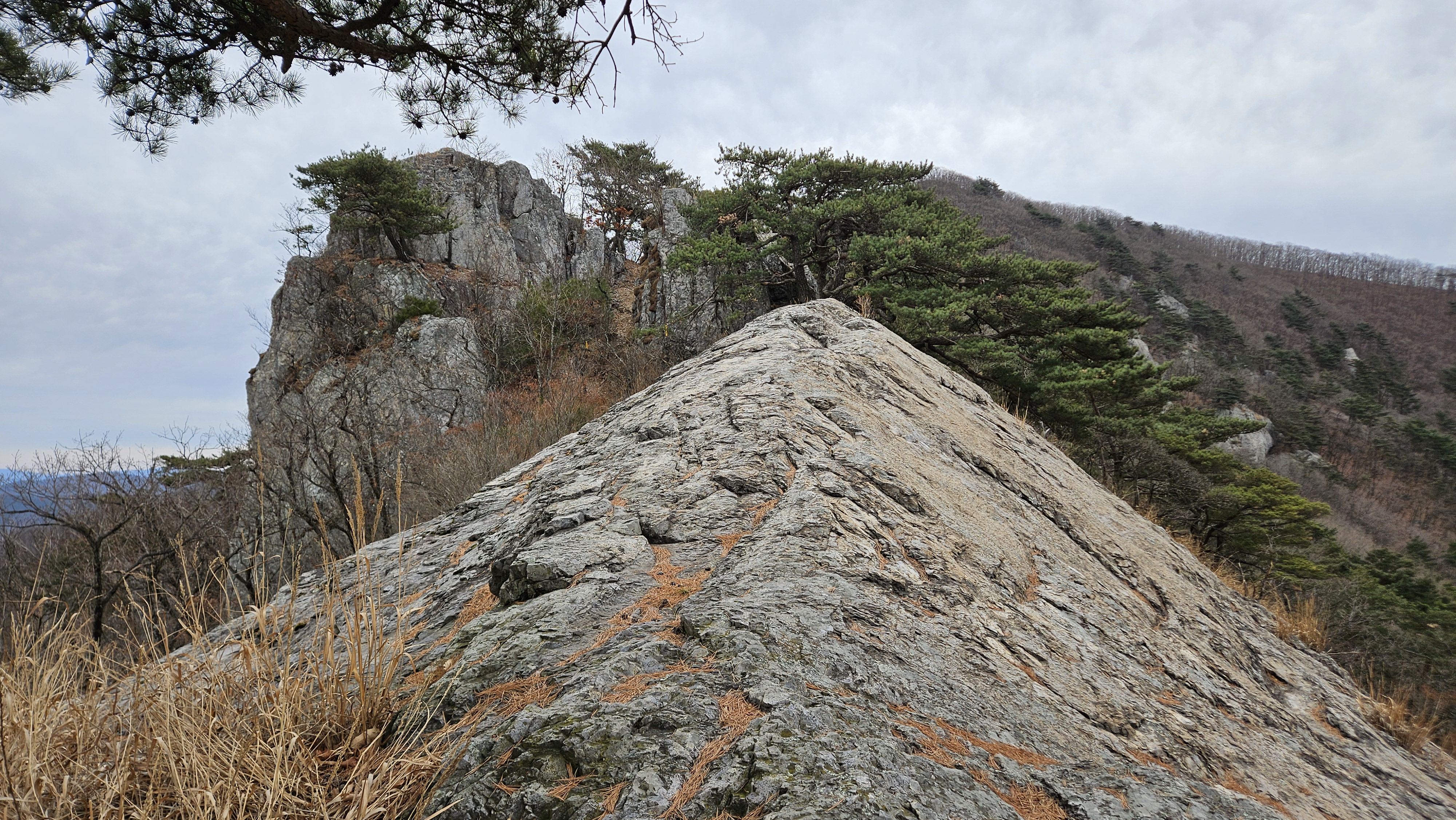 옹강산의 대표적인 명물인 말등바위입니다. "말등바위"라는 이름은 국제신문 근교산 취재팀에서 붙여준 이름이고 아래의