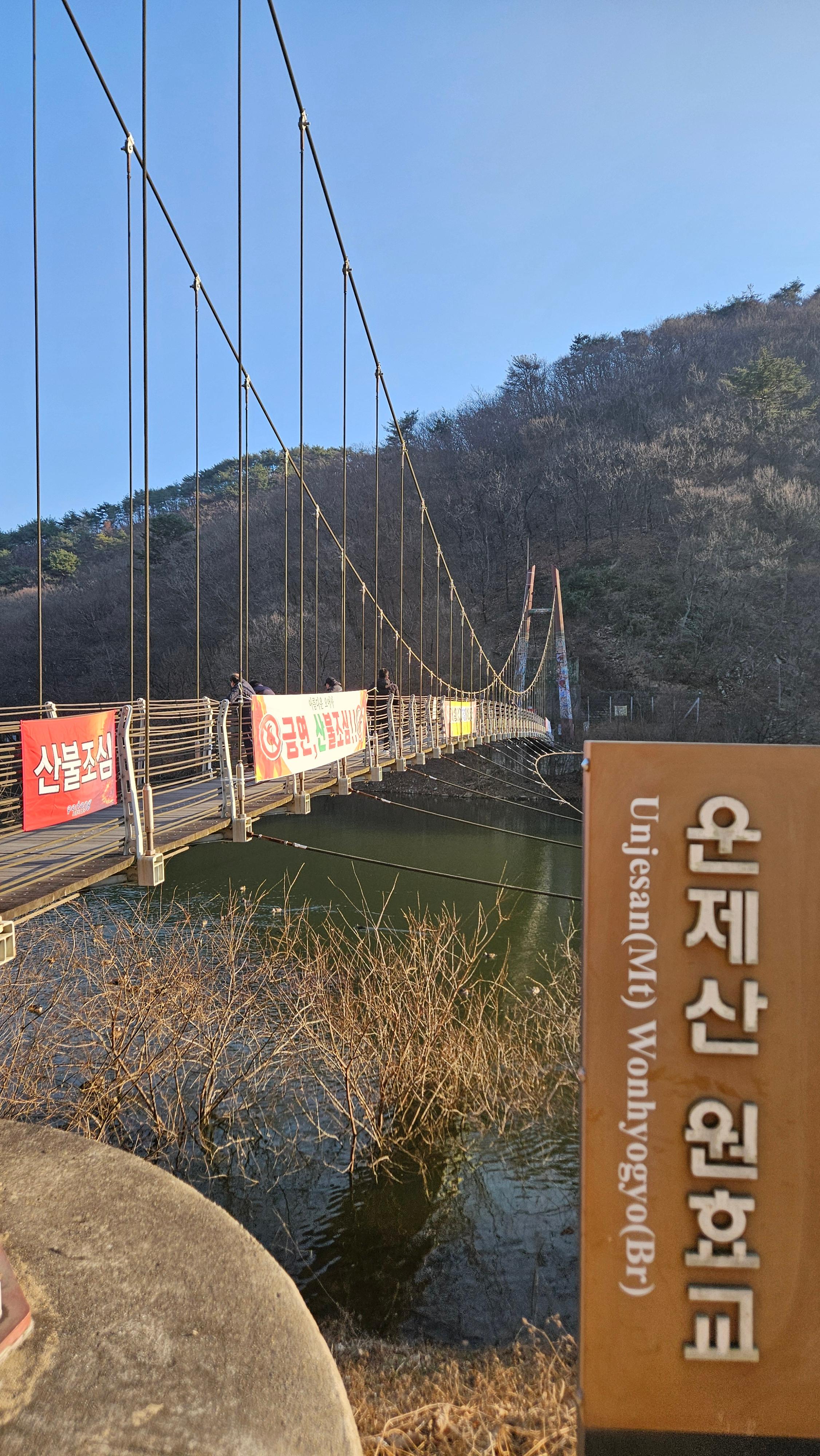 하산완료 후에 원효교 출렁다리를 건너봅니다.