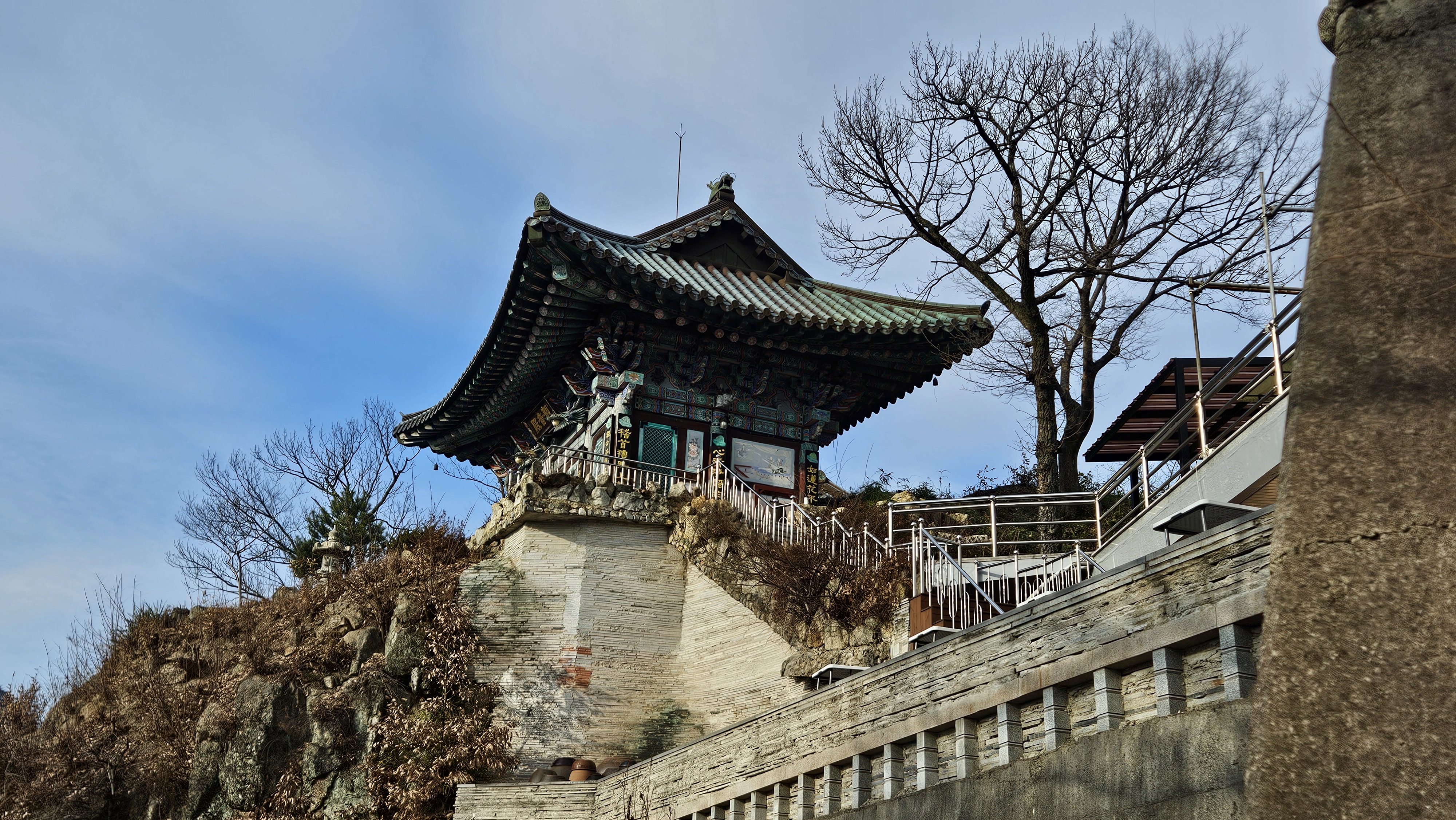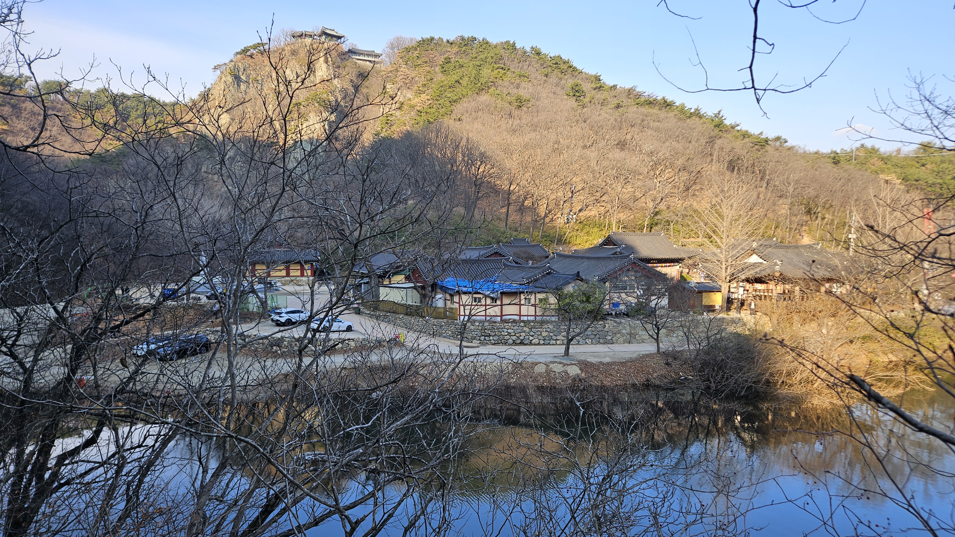 아래 오어사와 위쪽의 자장암을 동시에 랜즈에 담아봅니다.