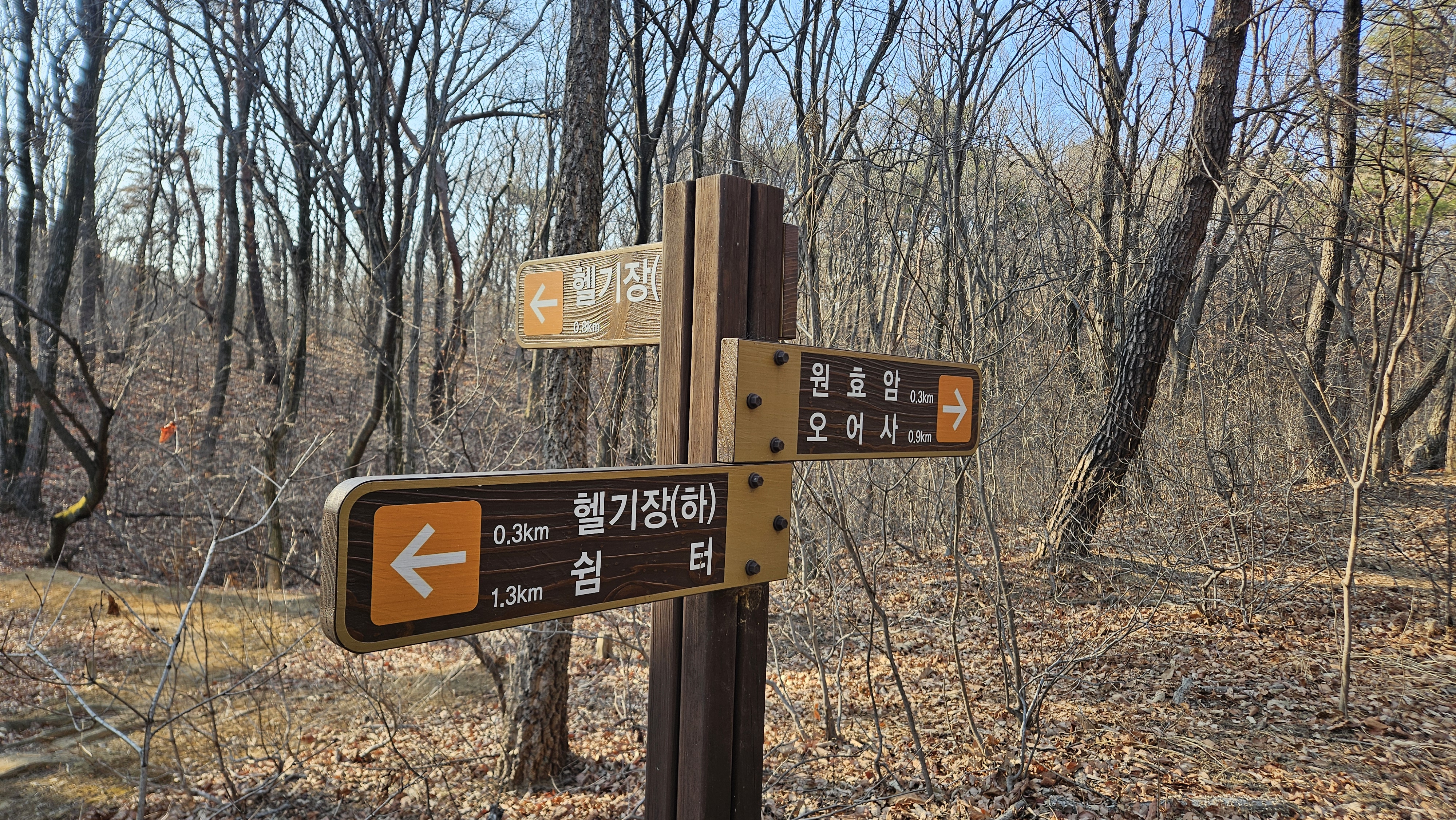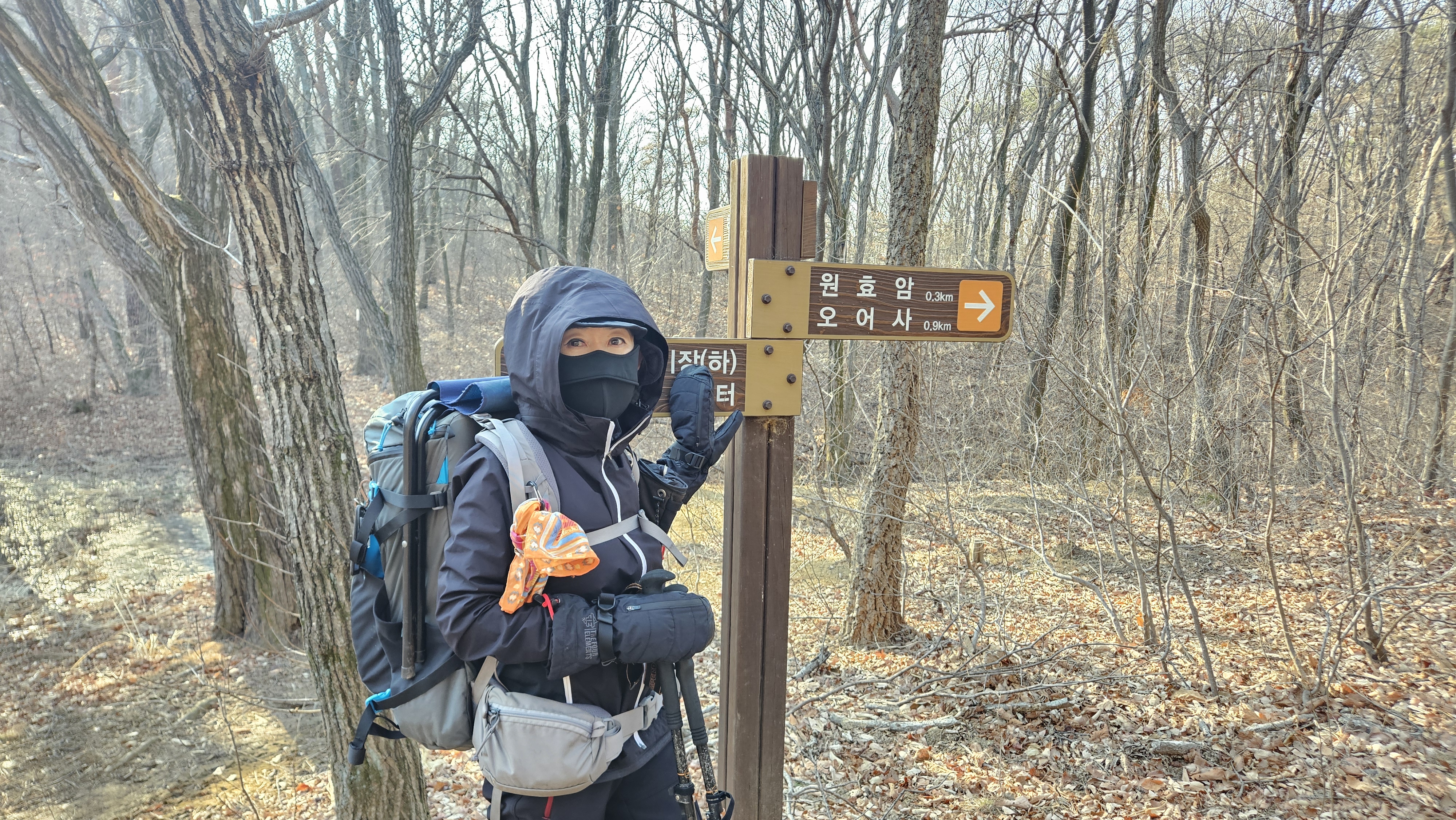 산여리 고개에서 운제로를 가로질러 산길을 따라 원효봉 방향으로 다시 올라섭니다.