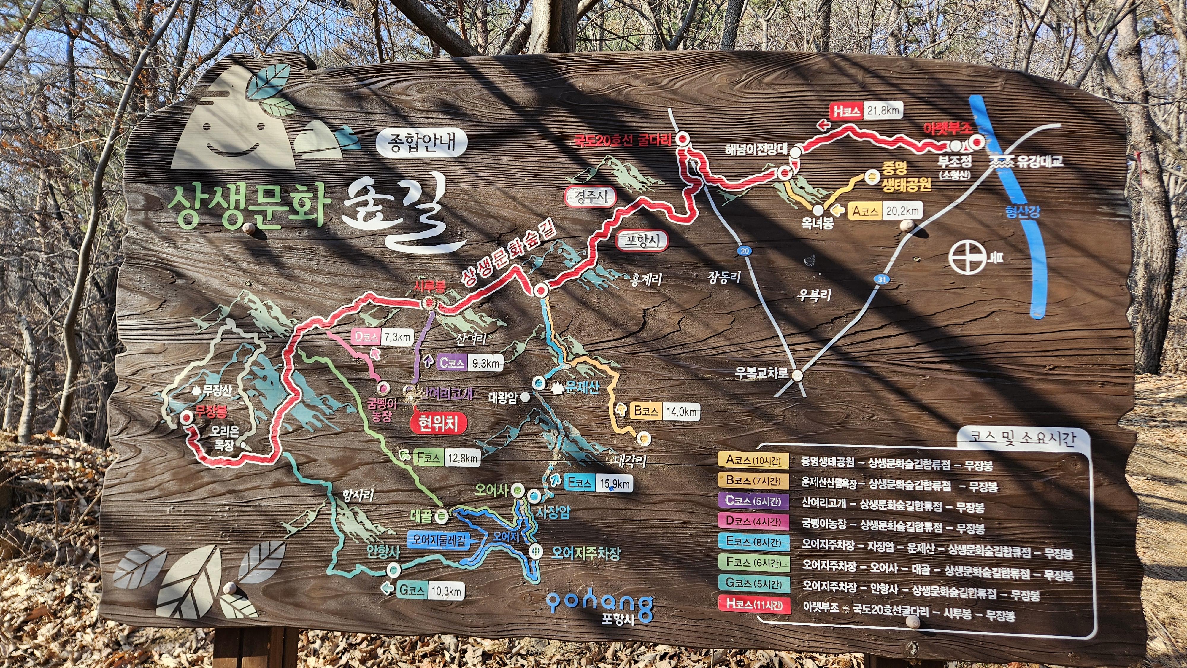 ♣. 산행코스 : 오어사 주차장~자장암~운제선원~산불초소~대각리 삼거리~운제산~홍계리 삼거리~동자봉~