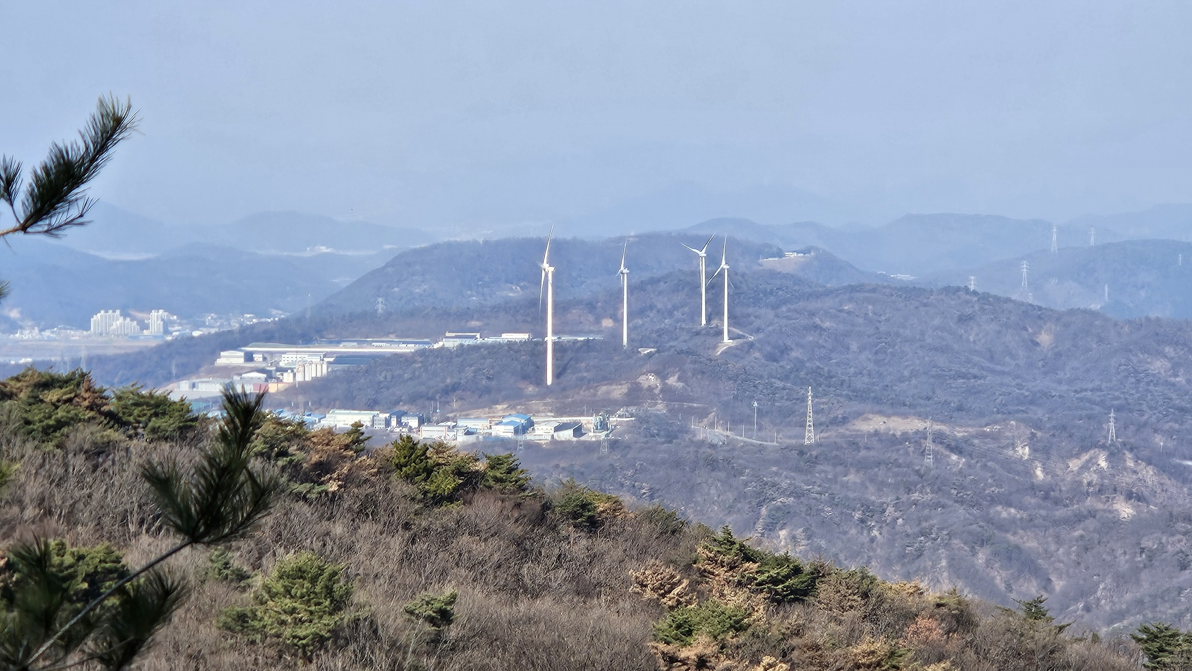 동자봉 가는 길의 조망처에서 멀리 풍차도 당겨보고...