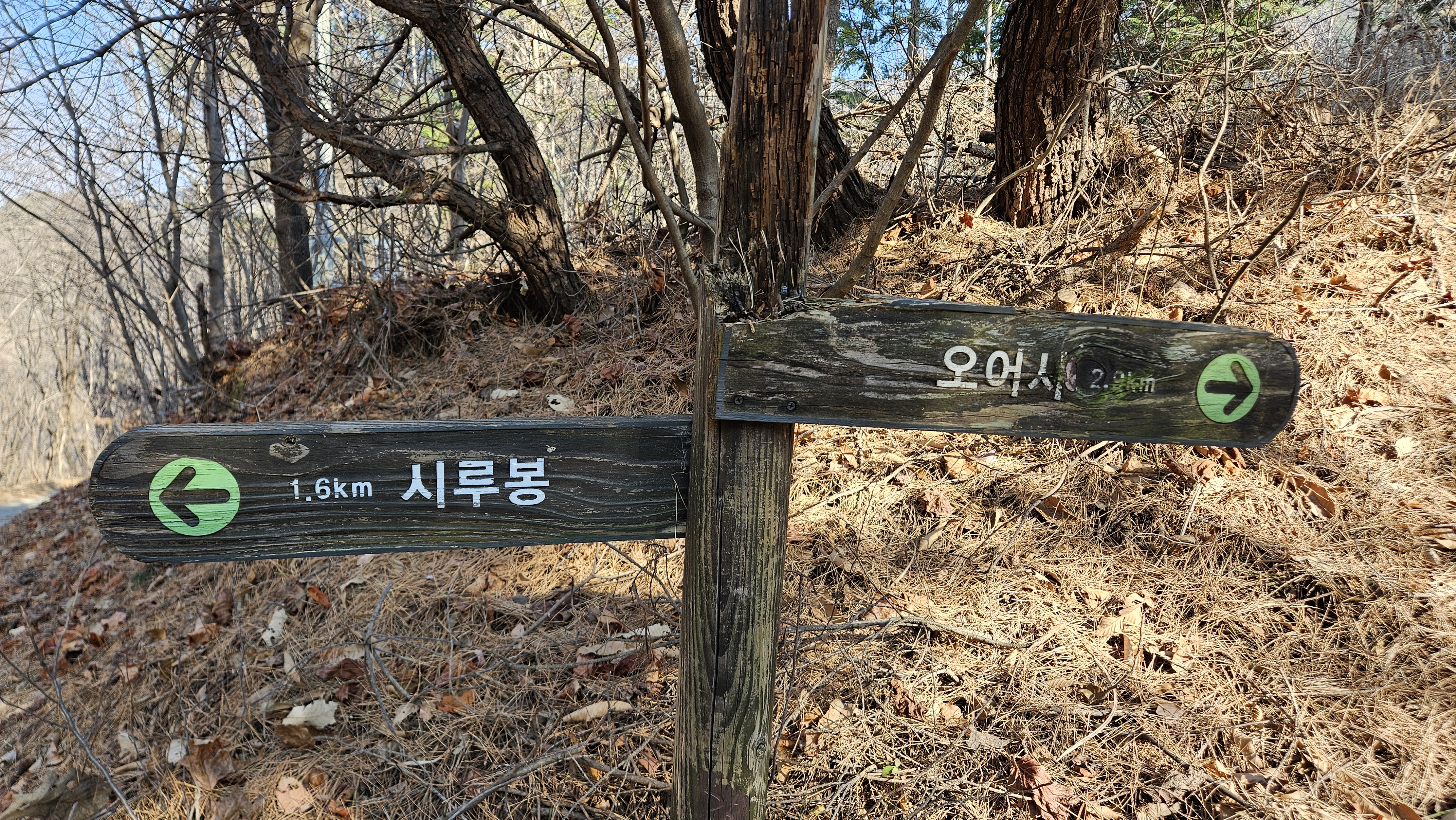 시루봉 사거리에서 시루봉을 다녀와서 산여리 고개 방향으로 진행합니다.